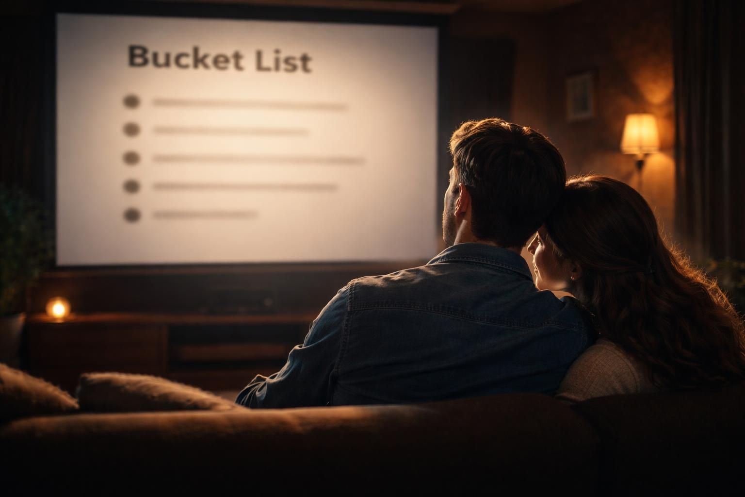 Couple : bucket list affichée en grand sur écran de projection