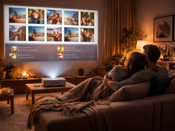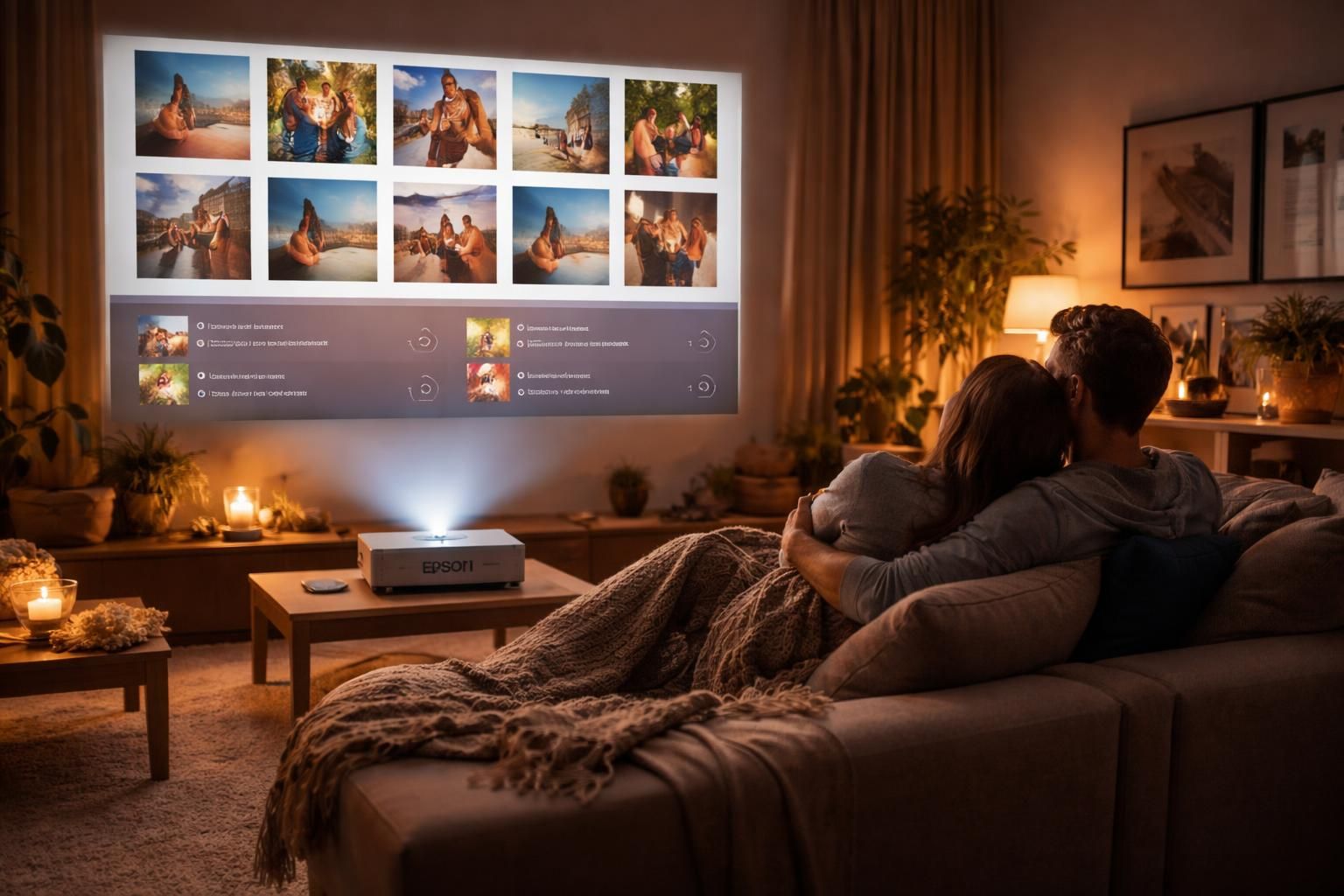 Vidéoprojecteur Epson : playlist et photos projetées pour un date à domicile